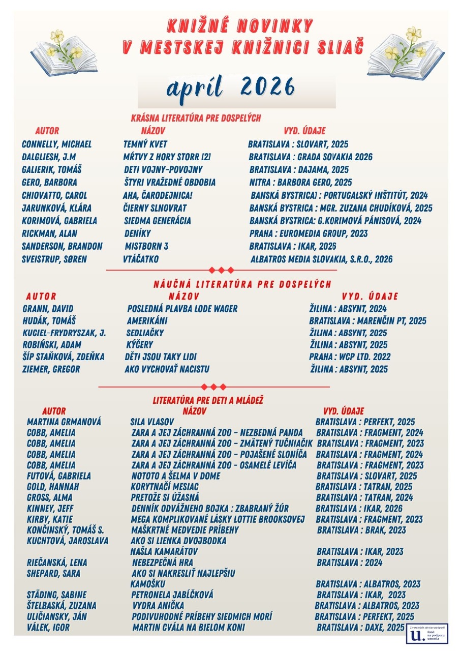 Aj Mestská knižnica Sliač sa zapojila do 17. ročníka úspešného celoslovenského projektu Maratón čítania „Čítajme si... 2026“, ktorý organizuje Linka detskej istoty, aby podporila a povzbudila deti k čítaniu. Naším spoločným cieľom bolo už tradične vzbudiť u detí a mládeže radosť z čítania a prepojiť svet kníh s dôležitou osvetou a podporiť hlavne ich duševné zdravie. V spolupráci so ZŠ v Sliači sa nám podarilo zapojiť do projektu 167 detí 1. stupňa a dúfajme, že po zhodnotení výsledkov prekonáme rekord z minulého roka, kedy čítalo na celom Slovensku viac ako 180 000 detí v 23 jazykoch, čím sme spoločne oslávili aj rozmanitosť tohto podujatia.